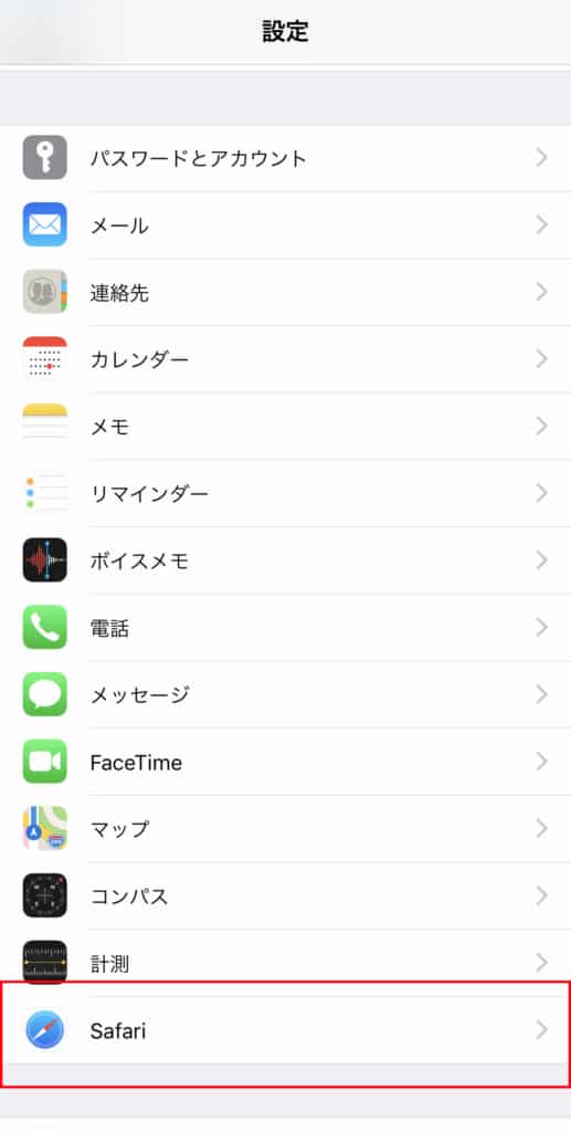 ①設定→Safariを開いて